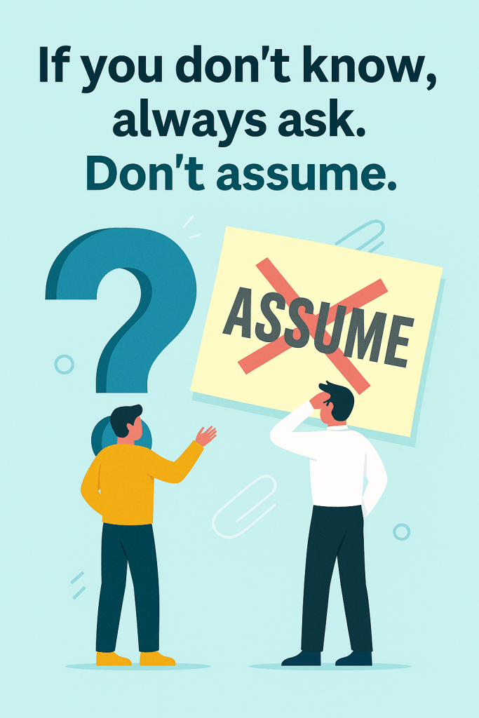 Let’s normalise asking the “obvious” questions. Because when you don’t ask, you assume. And when you assume… well, you know the rest.